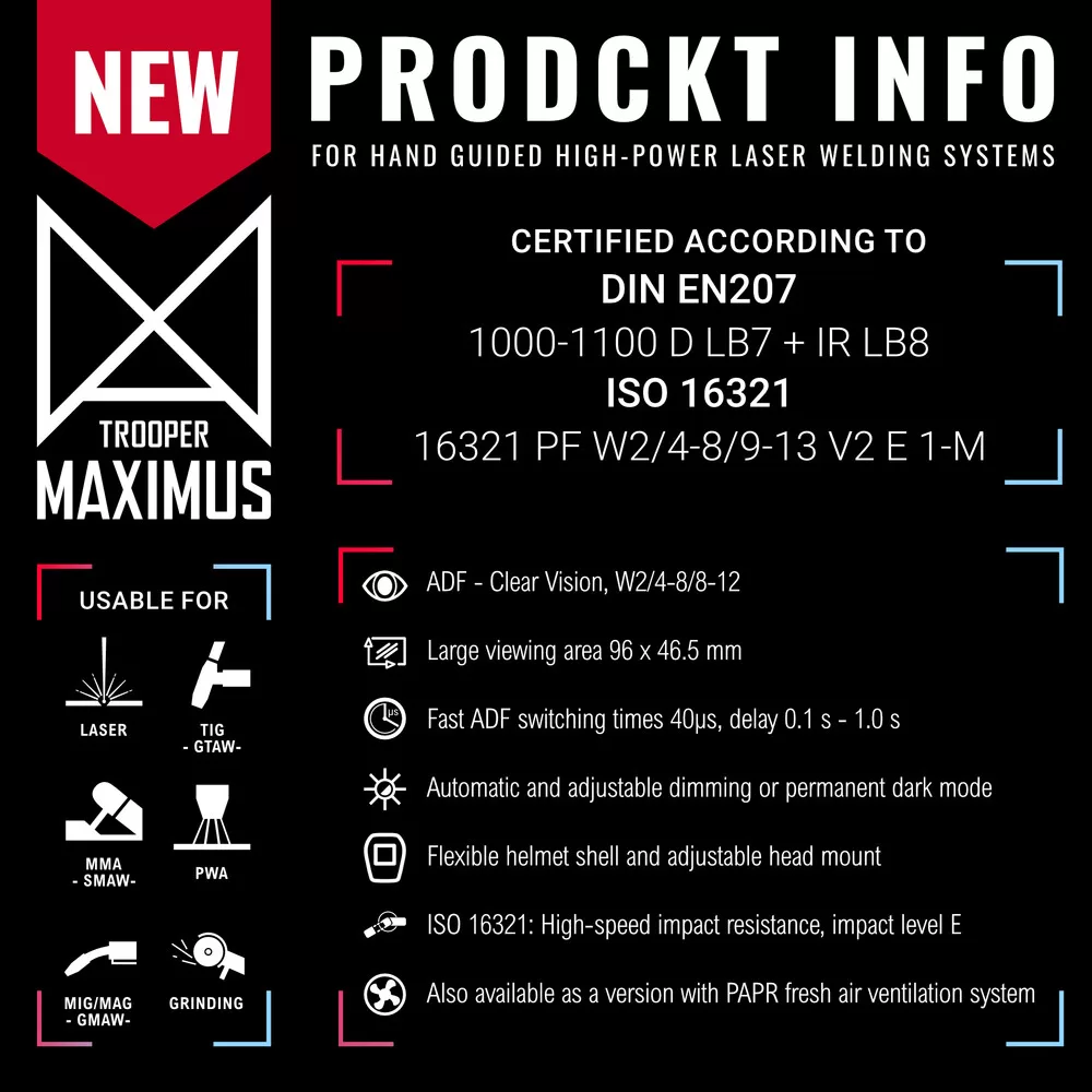 Con protezione laser permanente e protezione antiabbagliamento automatica commutabile (ADF) per lavori di saldatura e meccanici con smerigliatrici angolari
